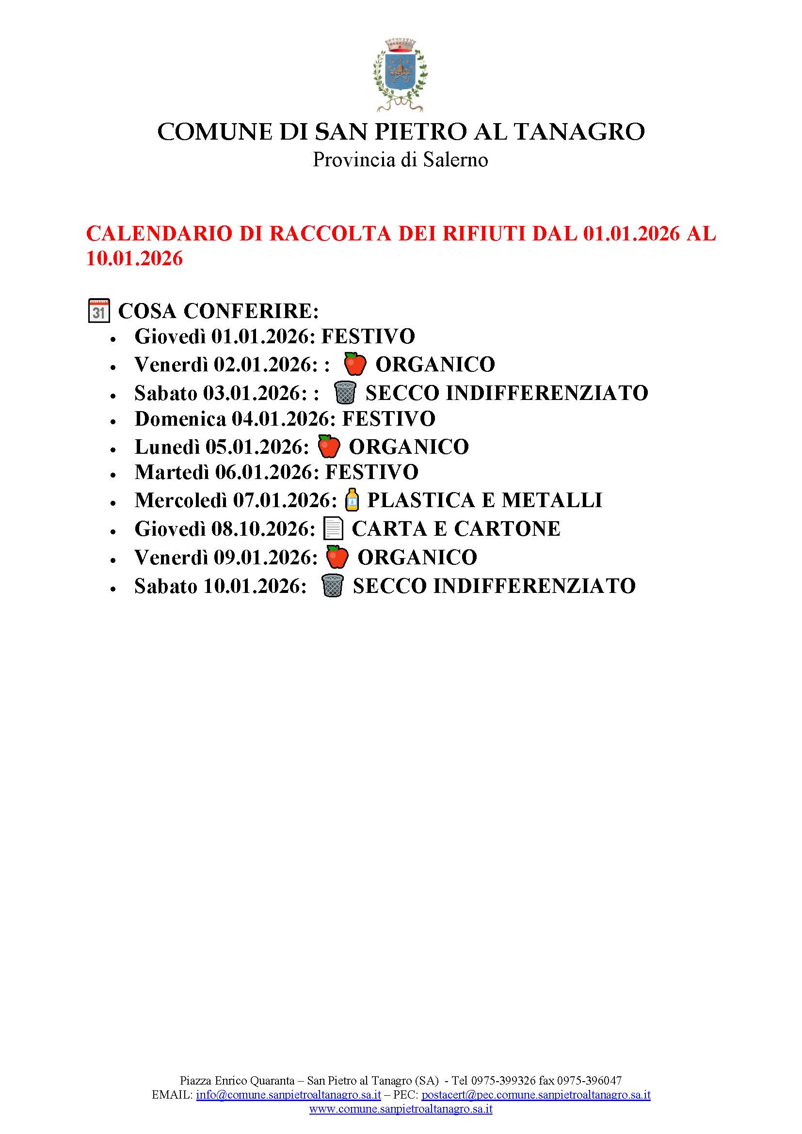 In attesa del calendario definitivo per l'anno 2026, si comunica la raccolta dal 01 al 10 gennaio 2026